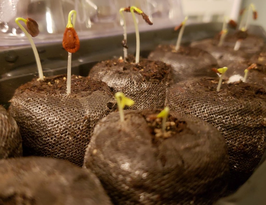 - when your seeds have sprouted, and begin to touch the lid, you can keep the lid off, but make sure that the peat pods stay moist! You can also begin setting your seedlings outside for an hour or so at a time (assuming it’s warm enough outside!).